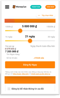 Moneycat sẽ cố gắng tìm kiếm những hạn mức phù hợp nhất với mỗi khách hàng và thông báo kết quả qua email đăng kí.
